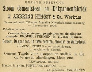 Door het aanbrengen van verschillende soorten machineriën zullen daar in 't vervolg Cement dakpannen en steenen worden gefabriceerd en wordt de fabriek zóó ingericht, dat men het geboete jaar kan doorwerken, wat door de arbeiders die op deze inrichting worden geplaatst, zeker eene zeer welkome verschijning zal wezen. Aan de panfabriek waren de arbeiders, behalve de meesterknecht, bijna een halfjaar zonder verdiensten, omreden er dan niet gewerkt kon worden. Alleen met de aanvoer van klei, benoodigd voor het zomerhalfjaar, kon dan nog iets worden verdiend.