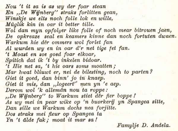 Voor onze plaats, die niet rijk is gezegend met industrieele ondernemingen, is het te hopen dat deze fabriek moge bloeien en zich mag uitbreiden, wat zeer zeker onze stad en de ondernemers ten goede komt. |