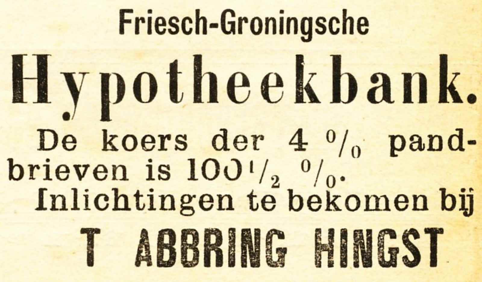 Naar wij uit vertrouwbare bron vernemen, zal de pannenfabriek van den heer T. Abbring Hingst alhier, eene geheele wijziging ondergaan.