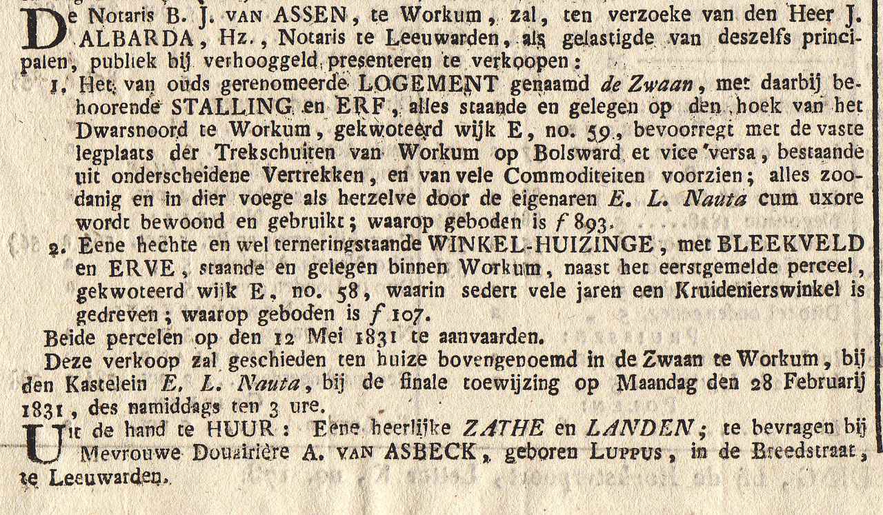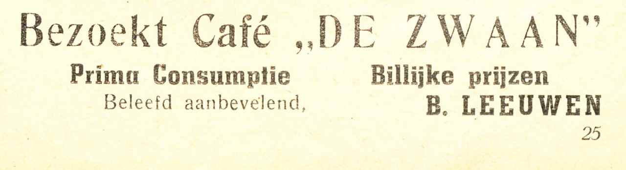 Johannes Sonsma was van 1877 tot 1894 kastelein van Café de Zwaan aan het Dwarsnoord. Bijgaand een paar advertenties van destijds.